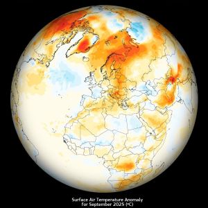 The average land temperature across Europe in September 2025 was 15.95°C, 1.23°C above the 1991-2020 average for the month, and ranking as the fifth warmest September on record.ā£